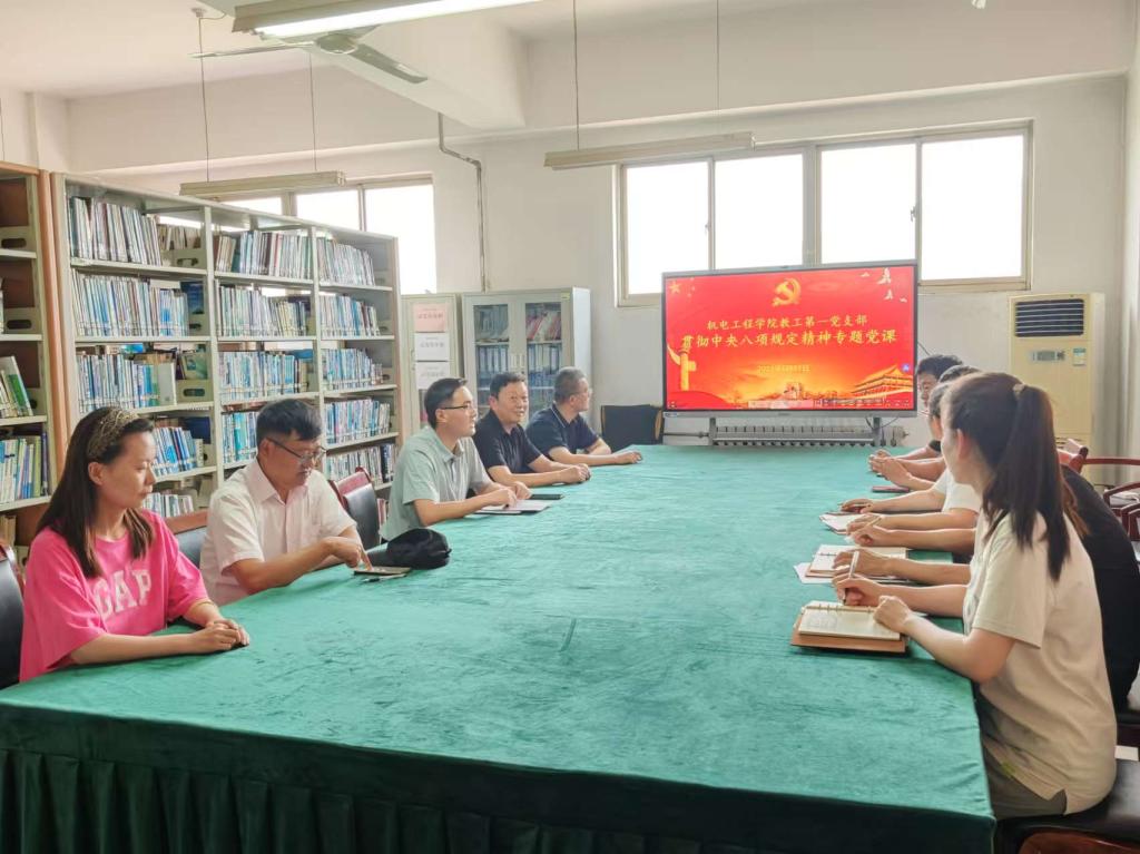 为进一步加强党员教师作风、教风建设,深入贯彻落实中央八项规定精神,6月11日下午,机电工程学院教工第一支部举办了深入贯彻中央八项规定精神学习教育专题党课。学院教工第一支部书记李培民主讲,教工第一支部全体党员参加了此次学习。