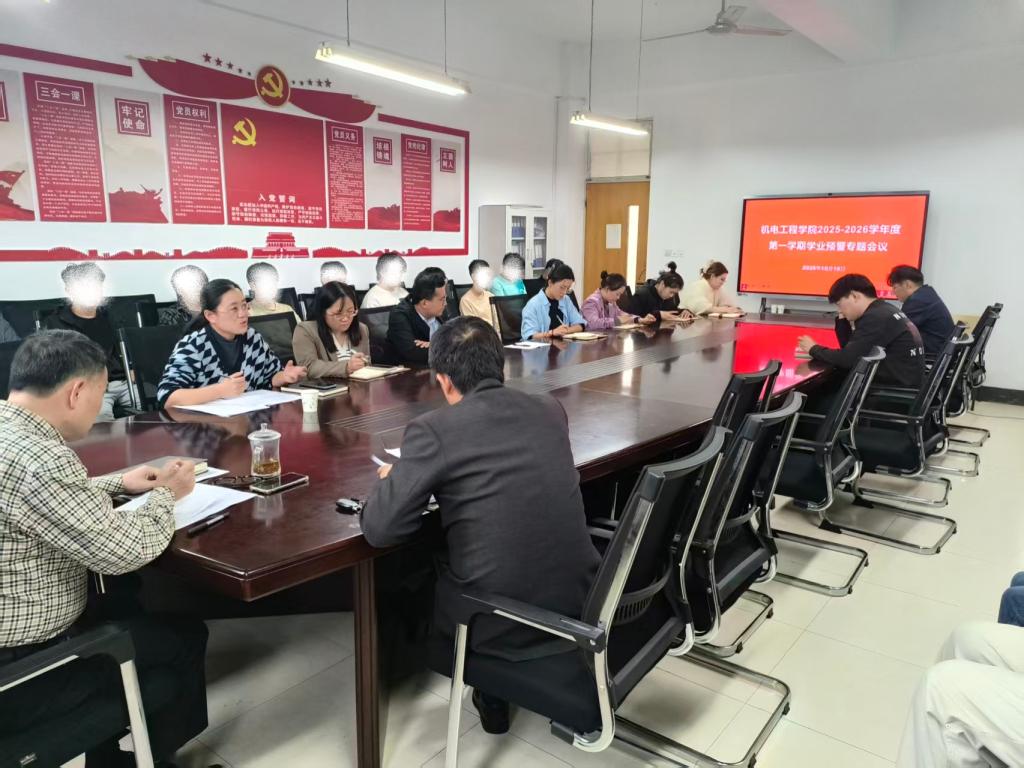 为切实加强学风建设,落实立德树人根本任务,及时关注和帮扶学业困难学生,10月15日下午,机电工程学院在理工楼2514会议室召开了2025-2026学年度第一学期学业预警专题会议。学院党委书记宋建修、党委副书记公金梅、副院长张成联、全体辅导员以及预警学生参加了本次会议。会议由公金梅主持。