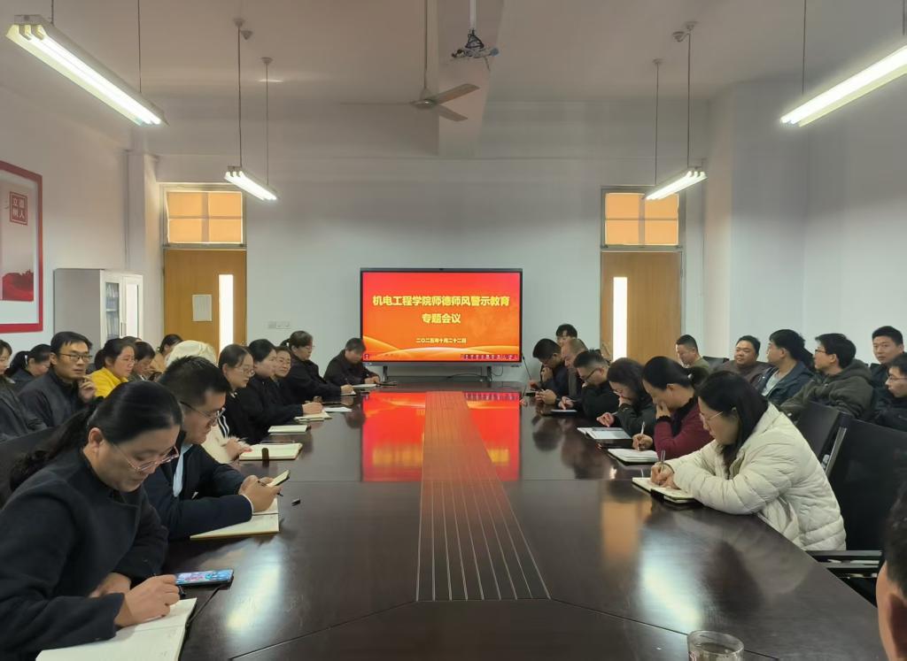 为进一步加强师德师风建设,提高教师的职业道德素养和教书育人水平,10月22日,机电工程学院在理工楼2514会议室召开师德师风警示教育专题会议。会议由学院党委书记宋建修主持,学院全体教职工参会。
