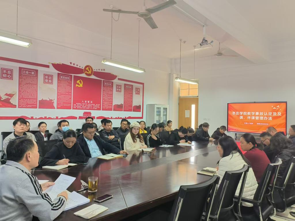 会上,宋书记带领全体教职工深入学习《中共枣庄学院委员会师德师风负面清单与失范行为处理办法》。他结合实际,逐一对师德师风负面清单范畴进行详细解读,引导教职工知敬畏、存戒惧、守底线。随后,会议学习了《枣庄学院教学事故认定及调、停课管理办法》。宋书记围绕教学事故的具体认定情形及处理办法展开深入讲解,针对排课规范、调课流程、停课管理等关键问题进行重点强调。他指出,教学是学院发展的生命线,全体教职工要严格遵守教学管理规定,共同维护教学秩序。