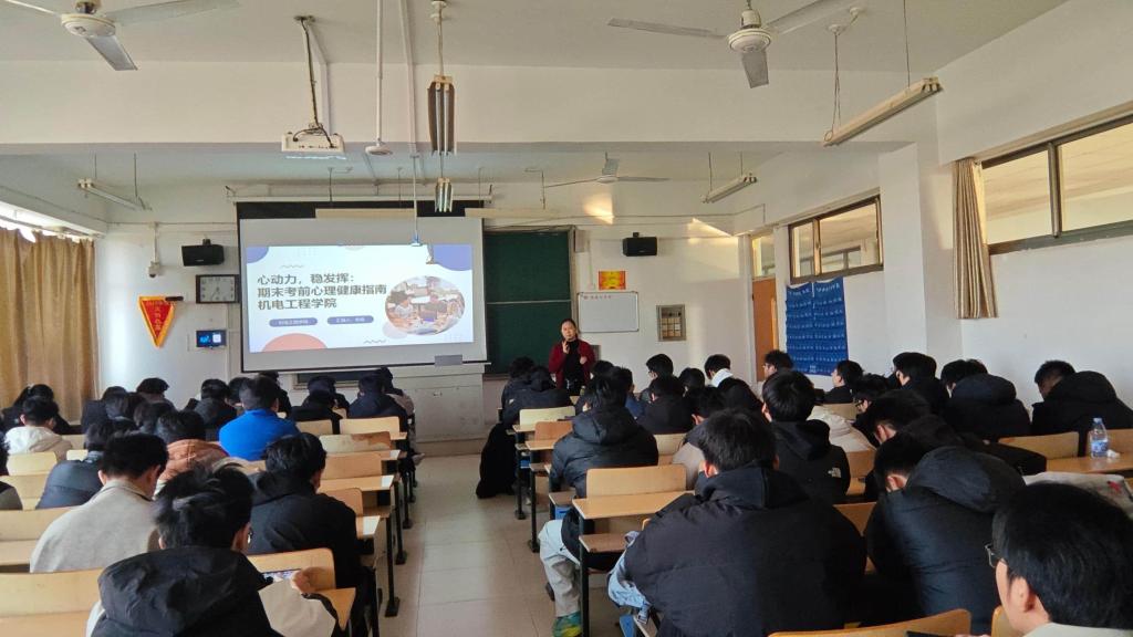 为帮助学生科学应对考试压力,掌握实用的心理调节技巧,提升心理调适能力,以平稳心态迎接期末考试。12月29日下午,机电工程学院在理工楼2418教室举行“心动力,稳发挥”期末心理健康讲座。此次讲座由专职辅导员陈艳老师主讲。