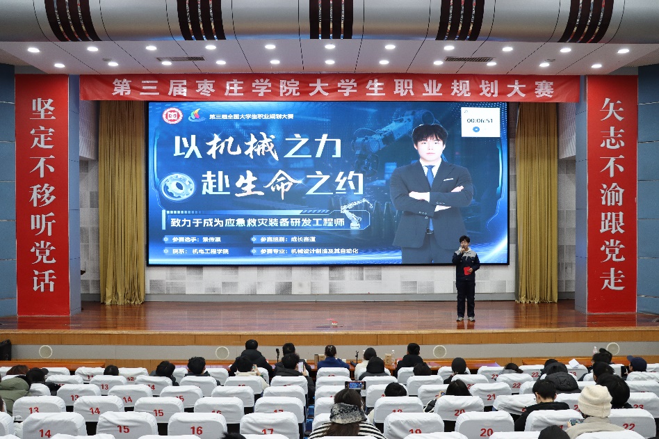 为深入贯彻党中央、国务院及省委、省政府关于高校毕业生就业工作的决策部署,强化生涯教育实效,引导学生树立正确的职业观、成才观与就业观,1月8日下午,由学生工作处主办、机电工程学院承办的第三届枣庄学院大学生职业规划大赛决赛在市中校区综合楼报告厅圆满落幕。