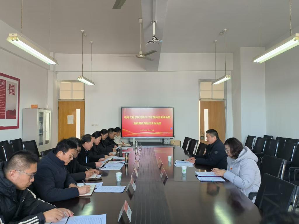 1月22日下午,机电工程学院党委在理工楼2514会议室召开2025年度民主生活会。校党委委员、宣传部部长闫昕到会指导,宣传部宣传科科长葛晓霞陪同。学院党委班子成员参加会议,会议由学院党委书记宋建修主持。