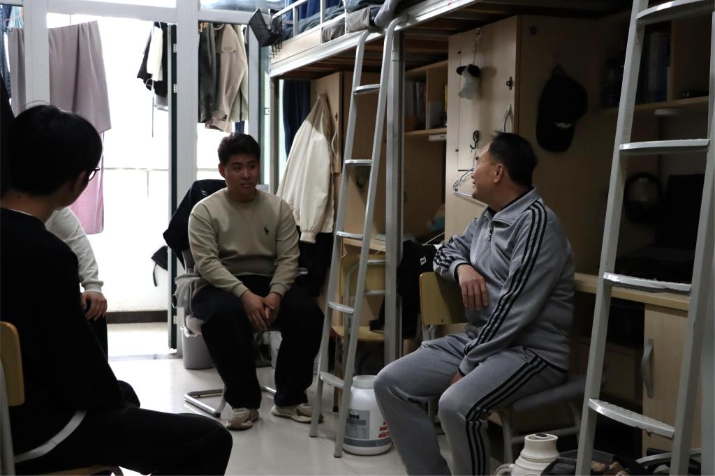 座谈过程中,宋建修亲切询问同学们的日常生活、学习进展、宿舍氛围、学业规划等情况,耐心倾听大家在学习生活中遇到的问题与诉求,对同学们提出的疑问逐一细致解答,现场交流氛围轻松融洽。同时,宋建修结合就业形势与学生需求指出,当下是为考研深造、就业发展做筹备的关键阶段,鼓励同学们尽早确定目标院校与就业方向。叮嘱大家要珍惜大学时光,合理规划作息,养成良好学习生活习惯,重视宿舍安全与文明建设,营造团结友爱、勤学奋进的宿舍氛围,全面提升自身综合素养。